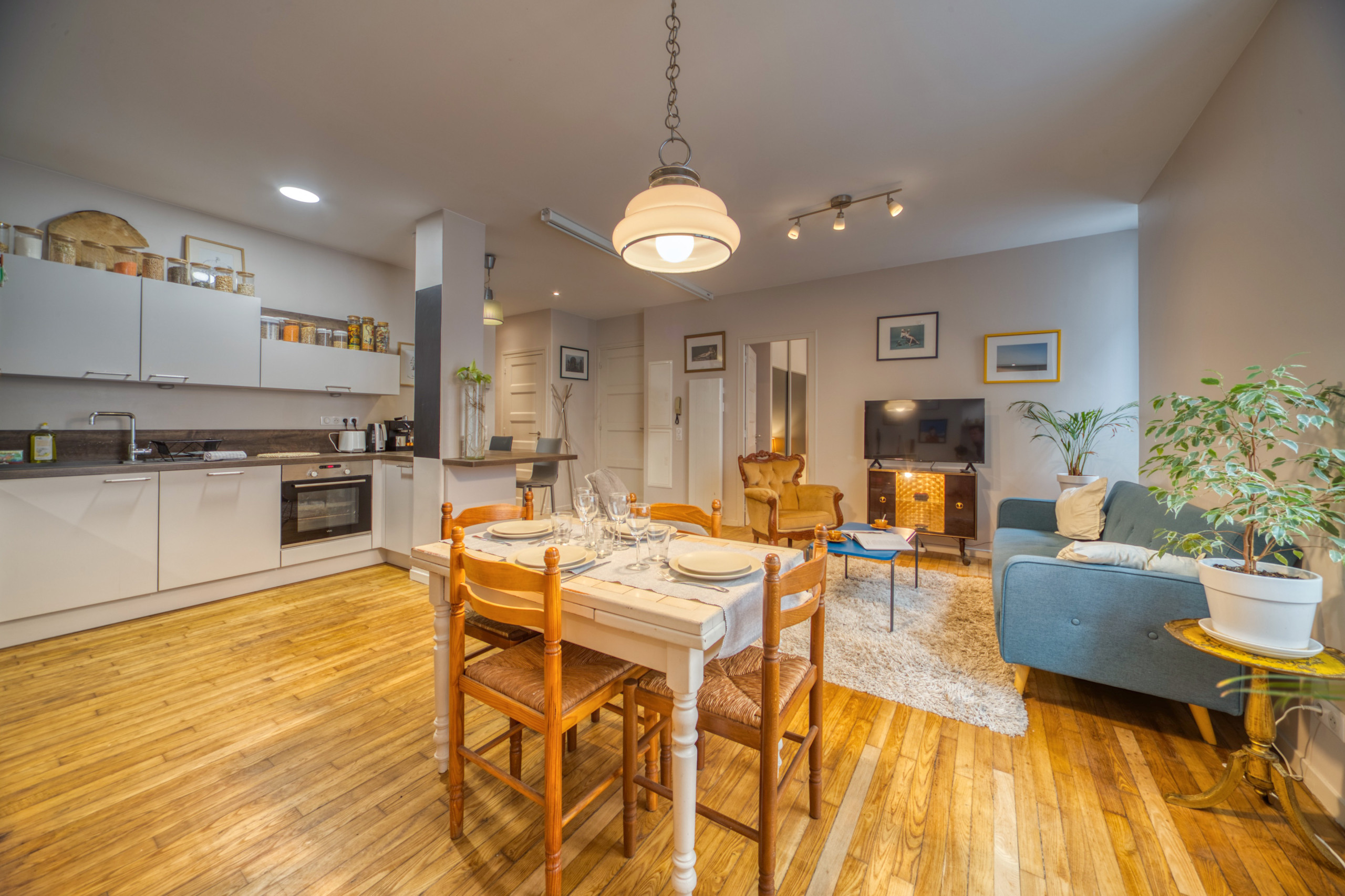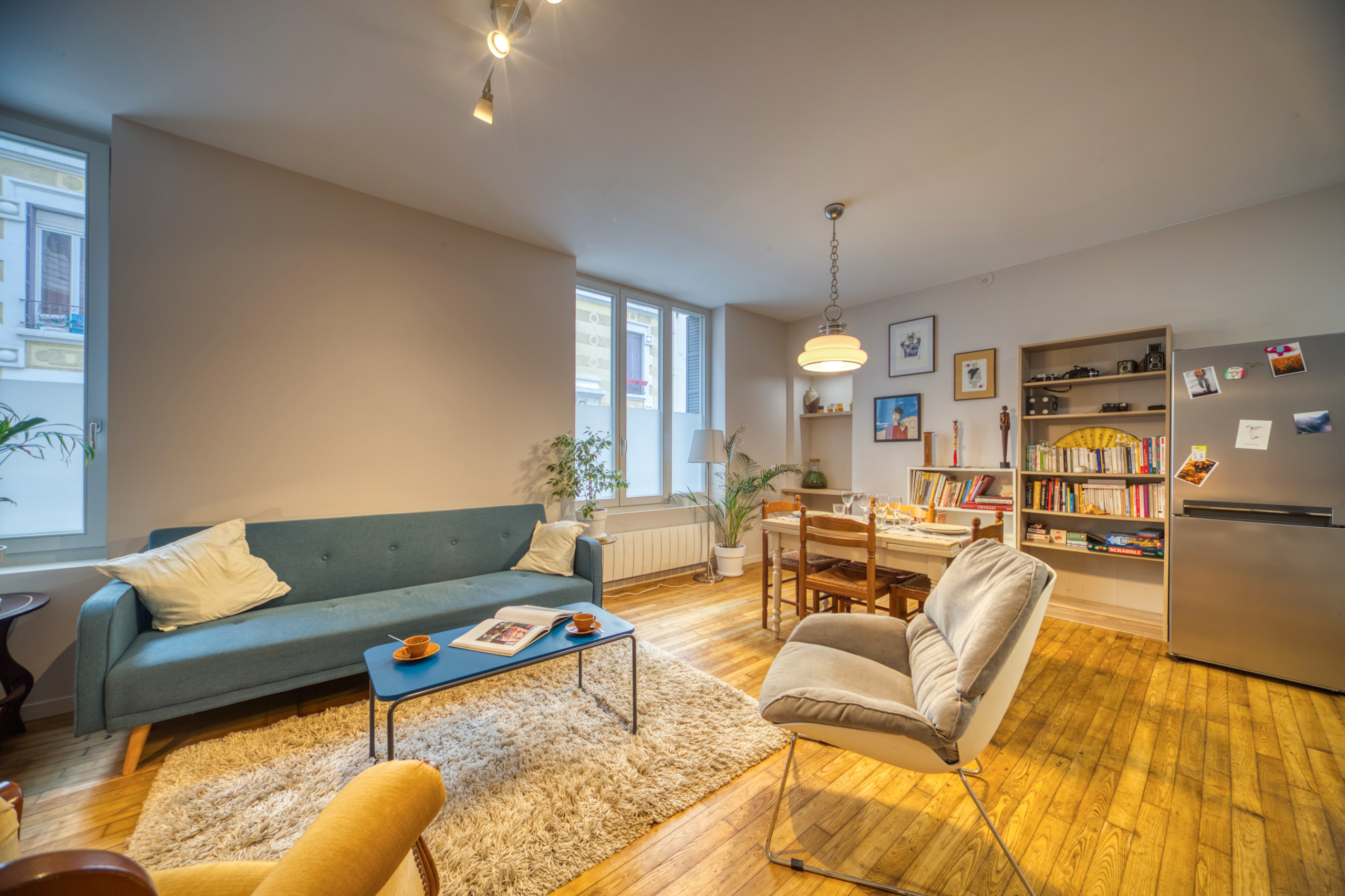 The apartment in Grenoble has 2 bedrooms and has capacity for 4 people. The apartment is 63 m². The accommodation is equipped with the following items: washing machine, internet (Wi-Fi), hair dryer, electric heating, 1 fan, 1 TV.In the open plan kitchen, refrigerator, microwave, oven, freezer, dishwasher, dishes/cutlery, kitchen utensils, coffee machine and kettle are provided.