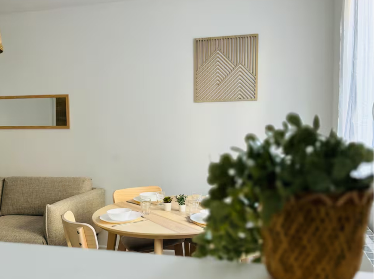 L’appartement se compose d’un salon/salle à manger convivial, de deux chambres équipées de lits doubles avec draps et oreillers, de commodes, miroirs, lampes de chevet et prises à proximité des lits pour recharger vos appareils.