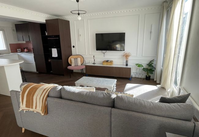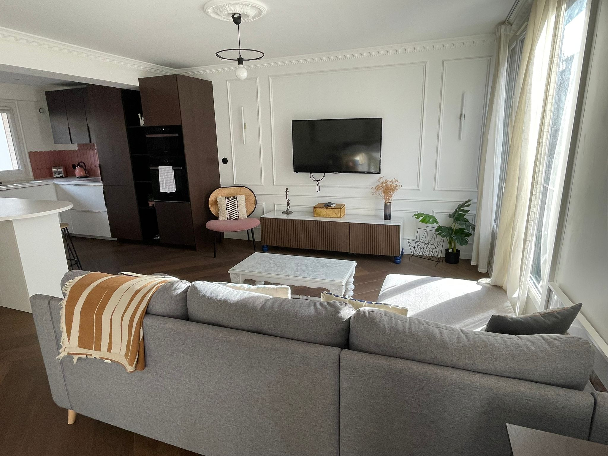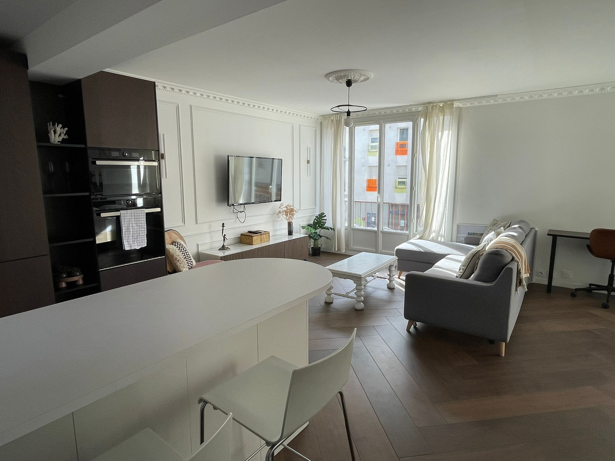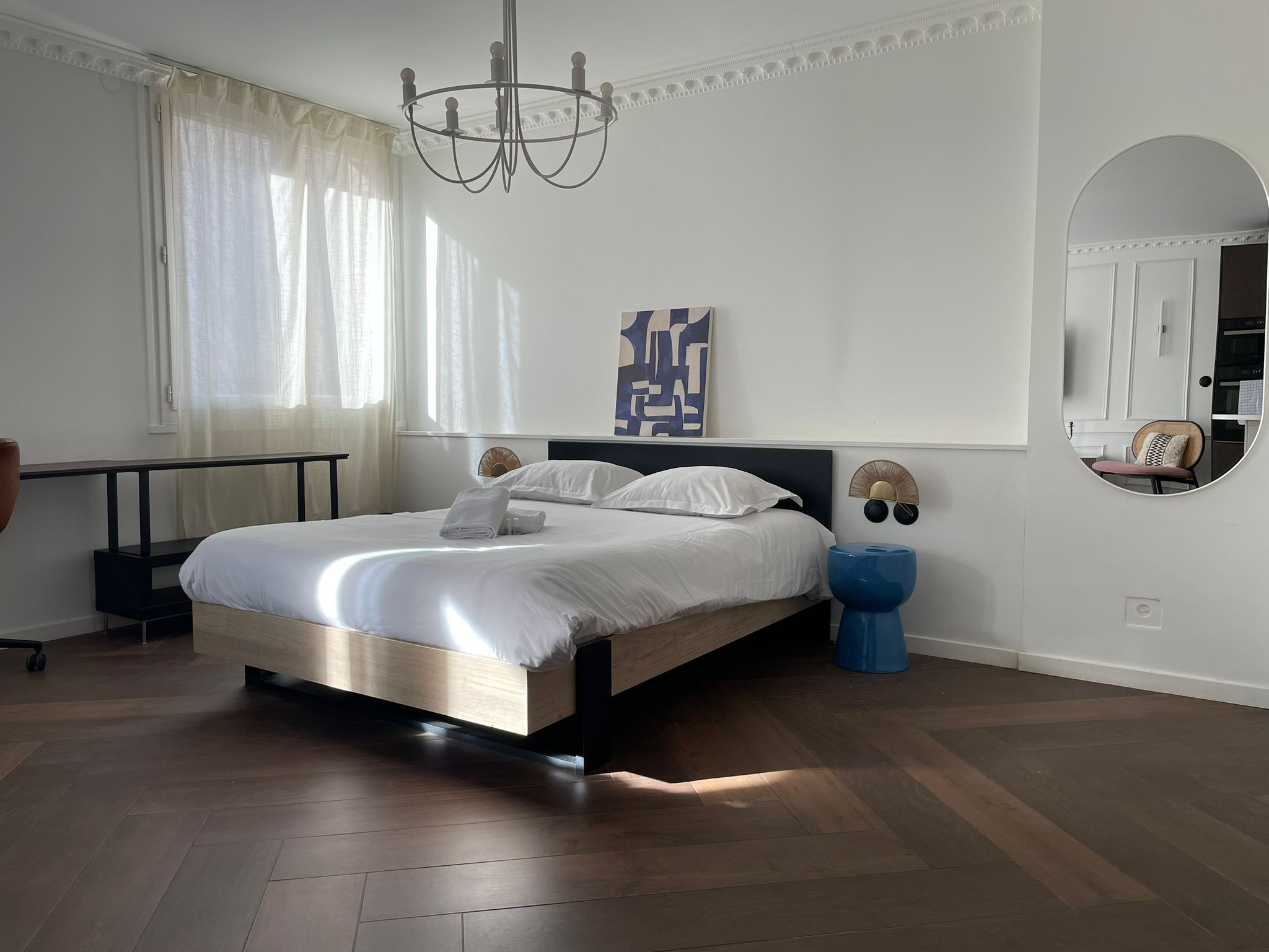 Bel appartement style loft : spacieux et confortable, idéal pour un séjour agréable en couple. Situé à 10 min de la gare et 15 min du centre-ville, avec tram au pied de l’immeuble et marché le week-end. Accès autoroute proche. Il dispose d’un lit double, d’un canapé lit de qualité, d’une cuisine entièrement équipée et d’un garage privé.